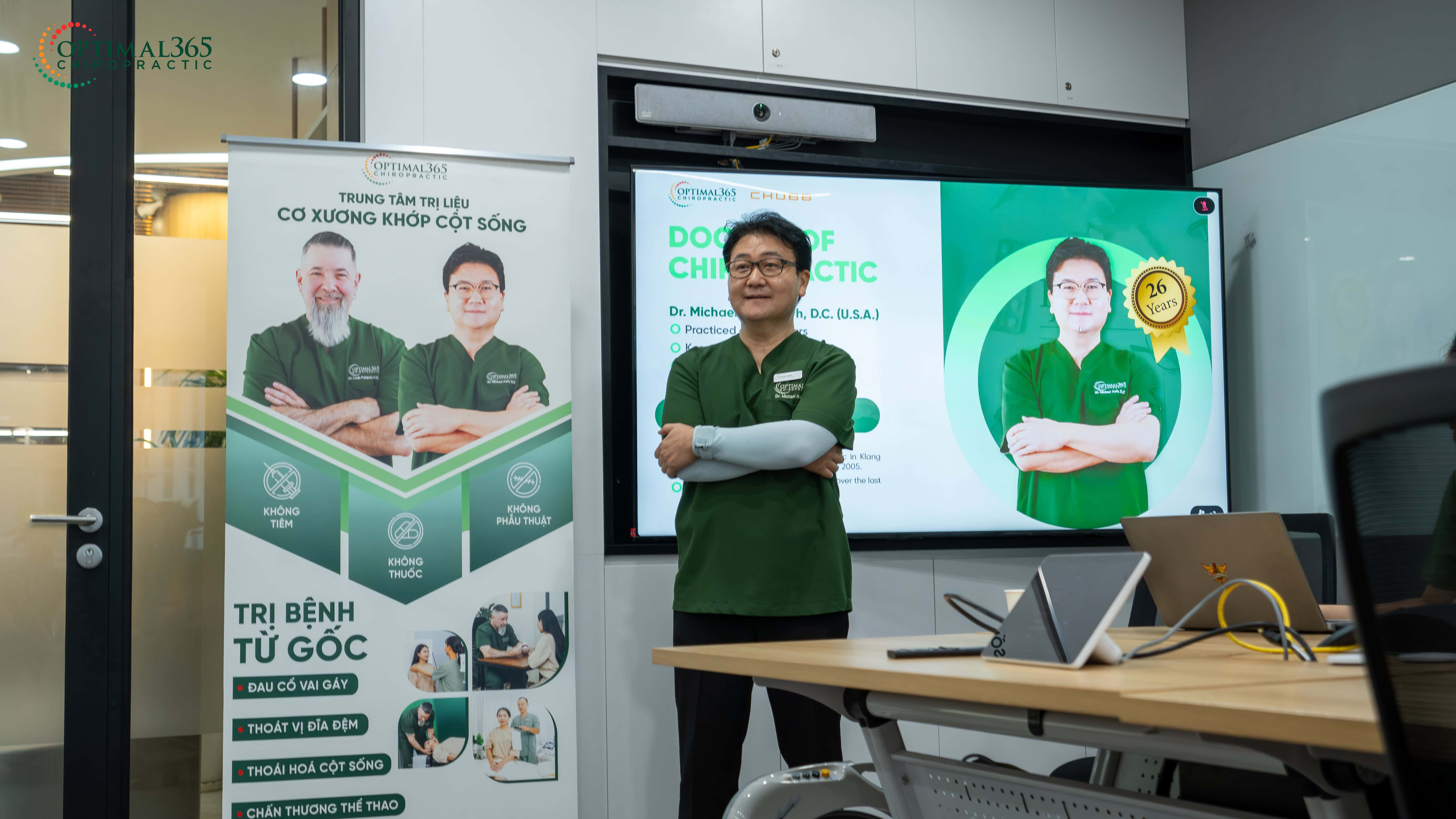 Buổi workshop đã thu hút sự quan tâm đặc biệt nhờ phần chia sẻ đầy giá trị từ Bác sĩ Michael Moon Awh, Trưởng khoa Nắn chỉnh Thần kinh Cột sống và Vật lý Trị liệu tại Optimal365 Chiropractic. Với hơn 25 năm kinh nghiệm trong lĩnh vực chăm sóc sức khỏe cơ xương khớp, bác sĩ đã mang đến những kiến thức chuyên sâu về: